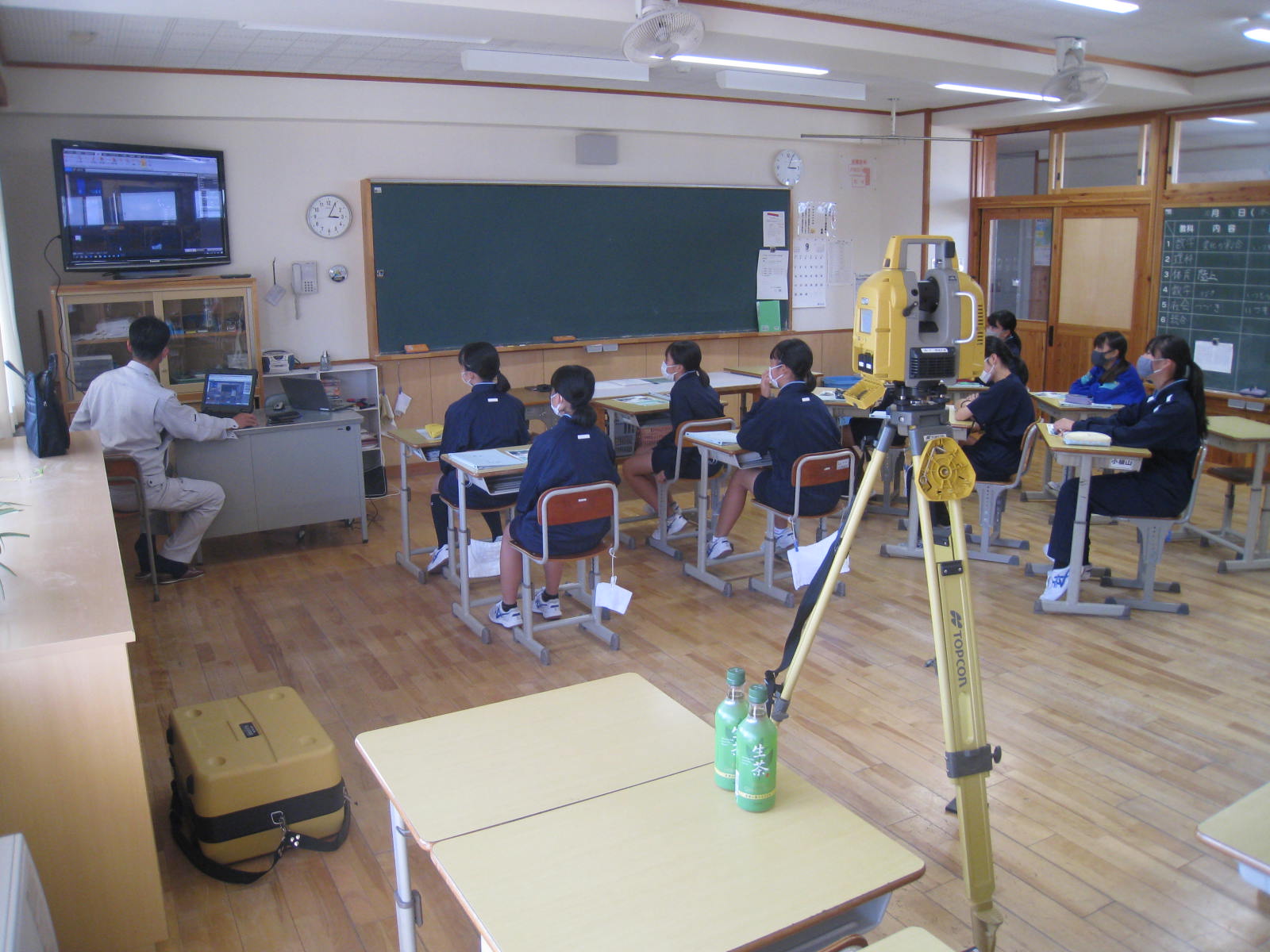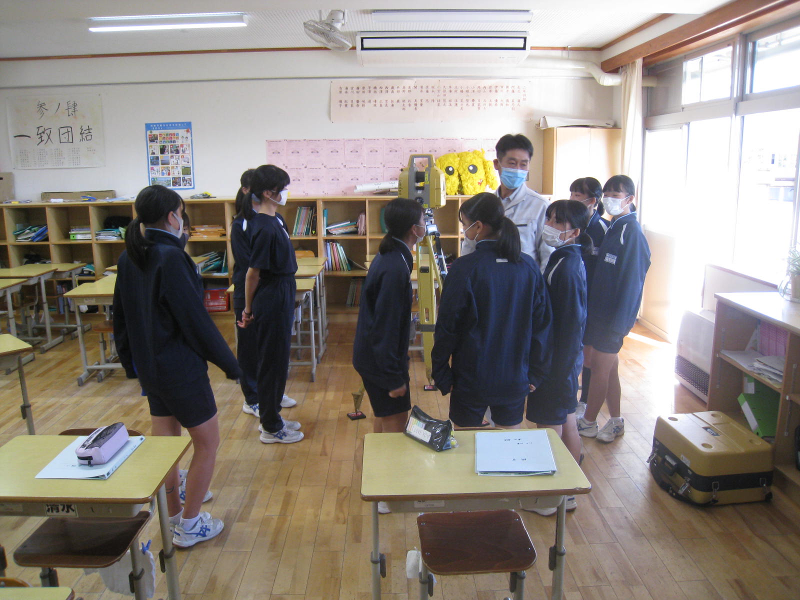 ちょっと、密になってしまいましたが、最後に生徒たちが測量機械を興味深そうにのぞき込んでいました。