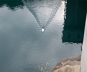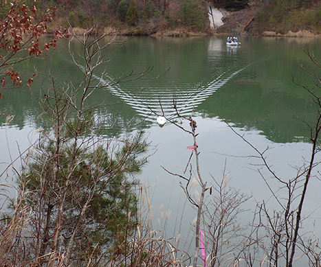 0.5 ~ 80mの範囲で測深することができます。堆砂があり浅くなっている場所でも、有人ボートに比べて吃水が少ないので座礁することなく計測することが可能です。