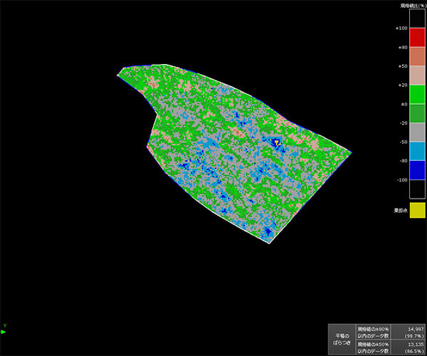 データはX・Y 座標、水深、側線離れなどすべてCSV データで保存されますので処理、編集が容易に行えます。 - ヒートマップ解析