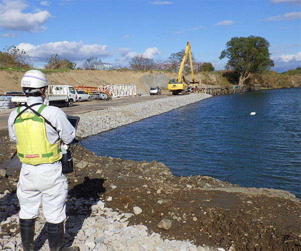 災害が発生した場合には、行政機関と連携して、被災箇所の速やかな復旧のため、現地の調査、測量、被災施設の設計を実施する作業