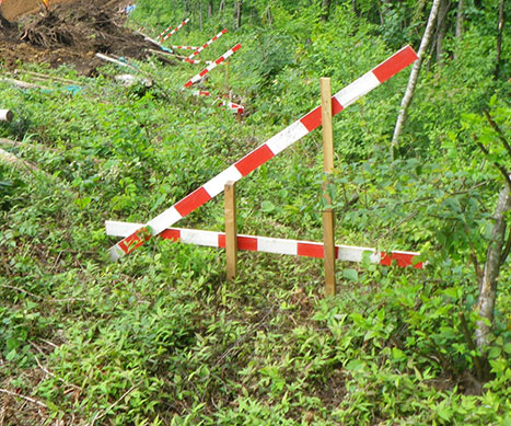 丁張り設置 | 起工測量成果に基づき、丁張り・幅杭の設置を行います。 |